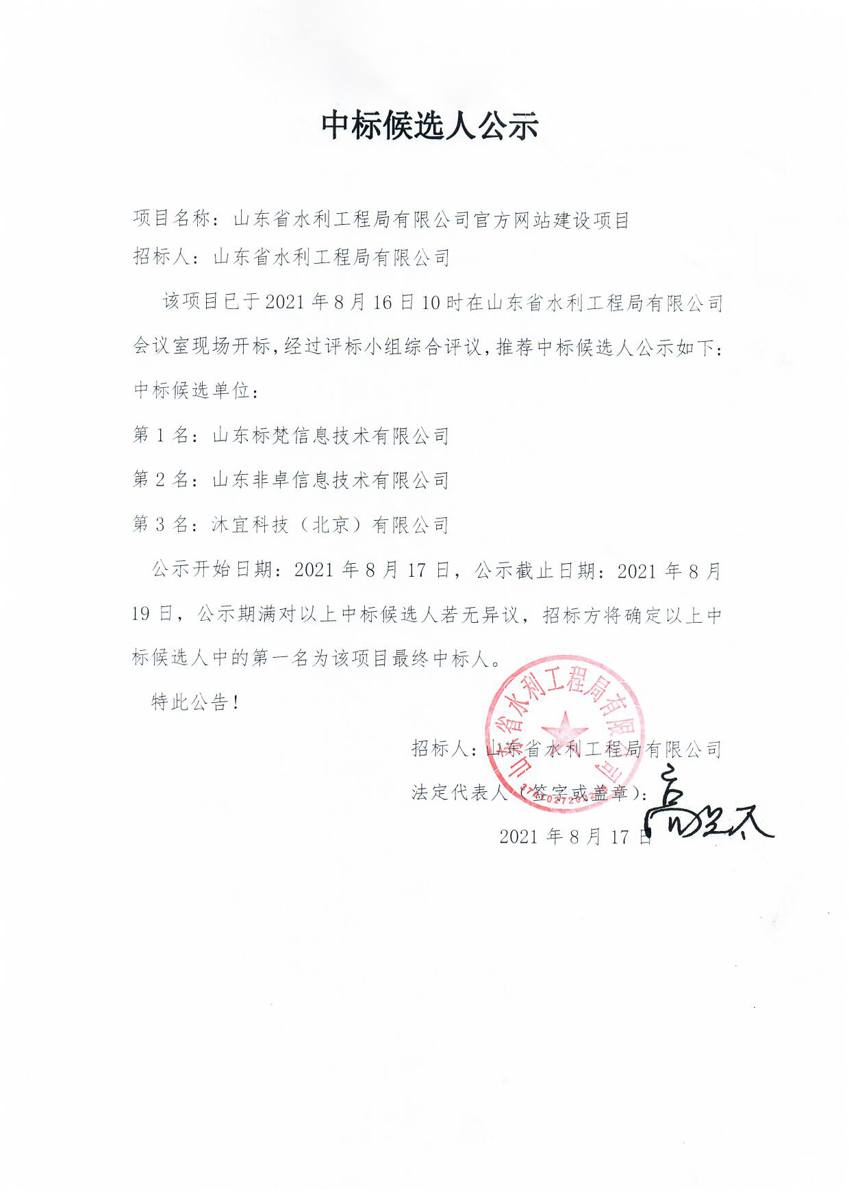 山東省水利工程局有限公司官方網(wǎng)站建設(shè)項(xiàng)目中標(biāo)候選人公示