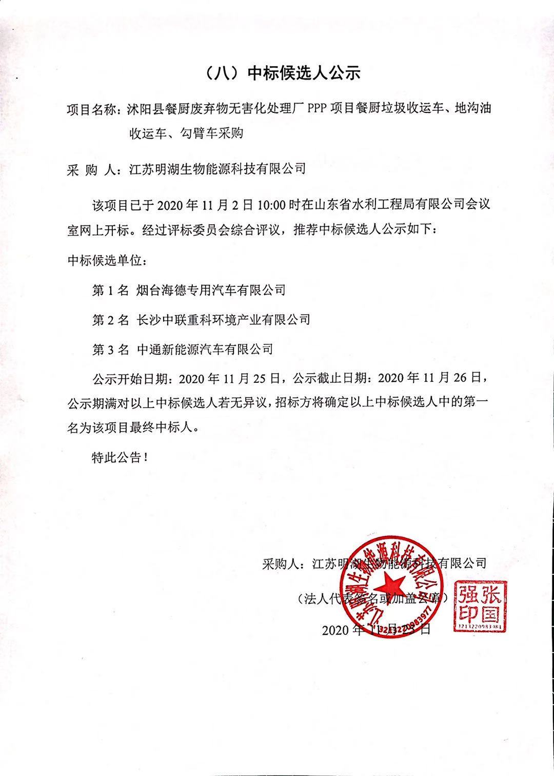 沭陽(yáng)縣餐廚項(xiàng)目餐廚垃圾收運(yùn)車、地溝油收運(yùn)車、勾臂車采購(gòu)中標(biāo)候選人公示