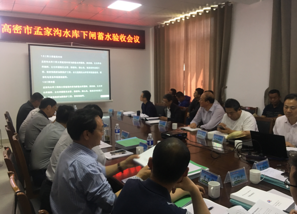 2019年5月21日,高密市孟家溝水庫(kù)下閘蓄水驗(yàn)收會(huì)議召開(kāi),驗(yàn)收委員會(huì)由濰坊市水利局、高密市水利局、高密市孟家溝水庫(kù)管理局組成,設(shè)計(jì)、檢測(cè)、質(zhì)監(jiān)、建設(shè)、施工等相關(guān)單位代表參加了會(huì)議。 驗(yàn)收委員會(huì)現(xiàn)場(chǎng)查看了孟 ...