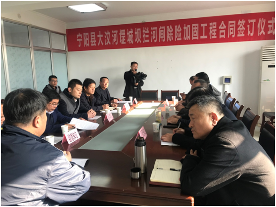 近日,寧陽縣大汶河堽城壩攔河閘除險(xiǎn)加固工程簽約儀式在山東省泰安市寧陽縣堽城壩管理所舉行,第一工程公司經(jīng)理張金輝代表我公司出席簽約儀式。 寧陽縣水利局劉局長對各中標(biāo)單位表示了祝賀,希望各單位團(tuán)結(jié)一致,加 ...
