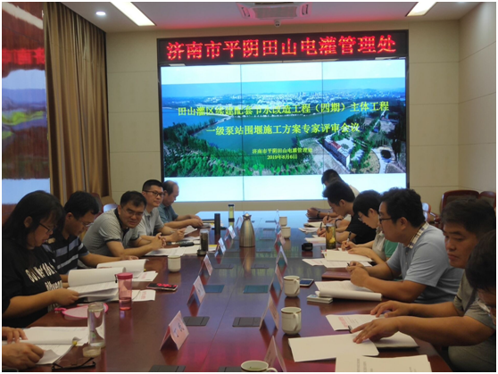 為保證田山灌區(qū)續(xù)建配套節(jié)水改造工程(四期)一級(jí)泵站黃河主河道圍堰施工方案順利通過省黃河河務(wù)局的報(bào)備審批,2019年8月6日,濟(jì)南市平陰田山電灌管理處組織專家在平陰召開評(píng)審會(huì),對(duì)我公司編制的《田山灌區(qū)續(xù)建配套一 ...